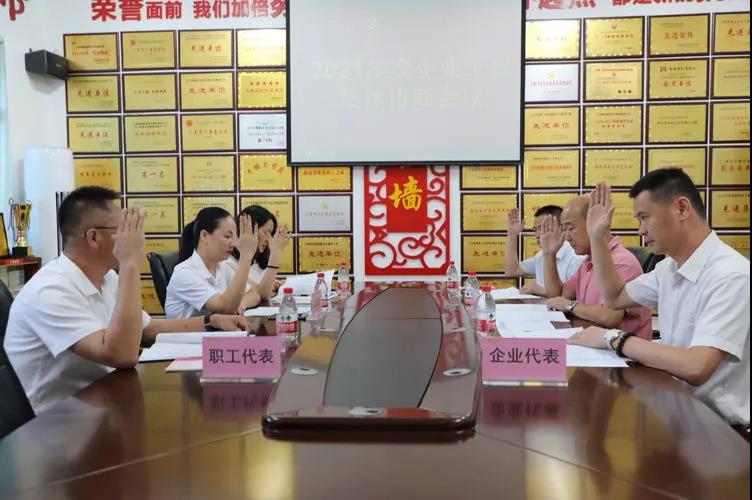6月30日,雙方代表正式召開2021年度企業(yè)工資集體協(xié)商專項會議。會上,職工方協(xié)商代表對集體協(xié)商的目的、意義及職工訴求進行闡述。雙方結(jié)合企業(yè)經(jīng)營狀況就職工工資、福利待遇等進行深入?yún)f(xié)商,并達成一致意見。