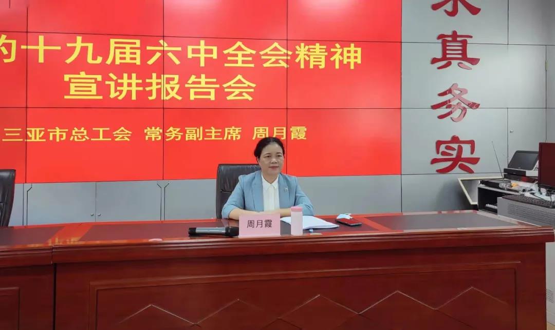 為深入學(xué)習(xí)宣傳貫徹黨的十九屆六中全會精神,三亞市總工會制定并印發(fā)了《關(guān)于在全市工會系統(tǒng)開展學(xué)習(xí)宣傳貫徹黨的十九屆六中全會精神宣講活動(dòng)的通知》,組建市總工會領(lǐng)導(dǎo)班子宣講團(tuán),深入相關(guān)基層工會開展黨的十九屆六中全會精神宣講。2022年1月6日上午,市總工會黨組副書記、常務(wù)副主席周月霞到三亞明佳園林環(huán)衛(wèi)集團(tuán)有限公司宣講黨的十九屆六中全會精神。明佳集團(tuán)總裁陳云參加宣講會。