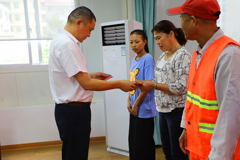 (工會(huì)主席高斐斐向?qū)W子發(fā)放助學(xué)金)