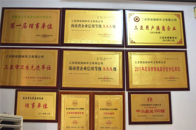 目前母公司連續(xù)五年被海南省企業(yè)信用評定中心評定為信用AAA等級單位,并榮獲中國清潔清洗行業(yè)國家一級資質(zhì)、城市環(huán)境衛(wèi)生經(jīng)營服務(wù)A級資質(zhì)、城市園林綠化三級資質(zhì),被中國清潔行業(yè)推選為國家三星級企業(yè)、十佳清潔服務(wù)企業(yè)、杰出貢獻(xiàn)企業(yè),并榮獲2016年中國清潔行業(yè)百強品牌,成為中國清潔行業(yè)常務(wù)理事單位、中國衛(wèi)生有害生物防制協(xié)會會員單位、中國城市環(huán)境衛(wèi)生協(xié)會會員單位、海南省衛(wèi)生協(xié)會理事單位、三亞市環(huán)境保護(hù)協(xié)會副會長單位,公司先后多次獲得國家、省、市獎勵和表彰40余次,成功在海南省股權(quán)交易中心掛牌,代碼:90777,并積極籌劃在新三板上市,已真正成為海南省環(huán)衛(wèi)行業(yè)的龍頭企業(yè)。